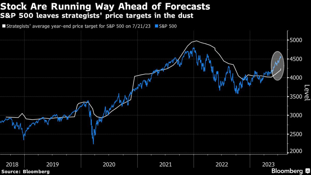 “We were wrong,” Wilson wrote in a note to clients Monday. “2023 has been a story of higher valuations than we expected amid falling inflation and cost cutting.” His team has recently shifted the focus to June 2024, for which the price target is set at 4,200, about 8% below its current level.