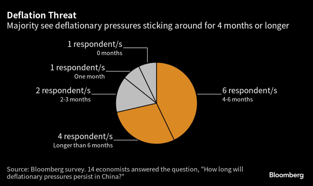 Respondents also flagged deflationary risks in the survey after China’s consumer price index flatlined in June.