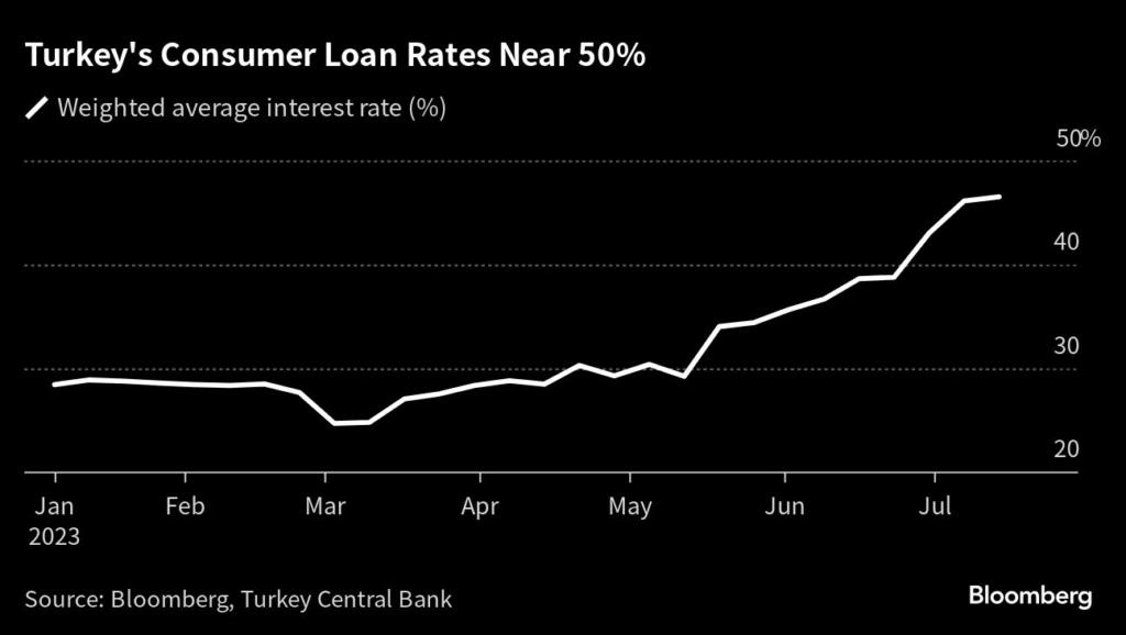 As a cost-of-living crisis consumed Turkey last year, credit-card spending surged to a record as an alternative to borrowing from banks at much higher rates.