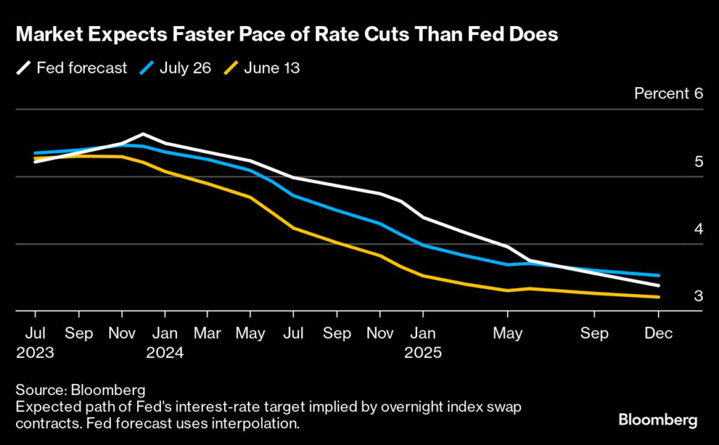 Swap rates for late 2024 still anticipate that the central bank will cut rates more deeply than officials expect, projecting the benchmark rate will be in the 4%-4.25% range.
