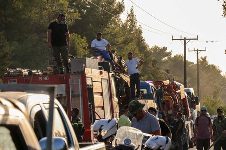 ATHENS (Reuters) -Authorities ordered the evacuation of a handful of communities in central Greece on Wednesday as they battled new fire fronts in the country, supercharged by strong winds and heatwave temperatures exceeding 40 Celsius (104 Fahrenheit).