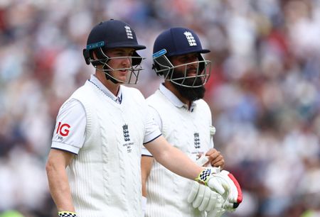 Off-spinner Todd Murphy’s second ball was creamed to the boundary by Moeen but then England’s wheels came off as they slumped from 183-3 to 212-7.