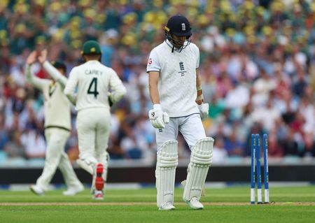 LONDON (Reuters) – Australia bowled England out for 283 in the first innings of the fifth and final Ashes test at The Oval on Thursday.