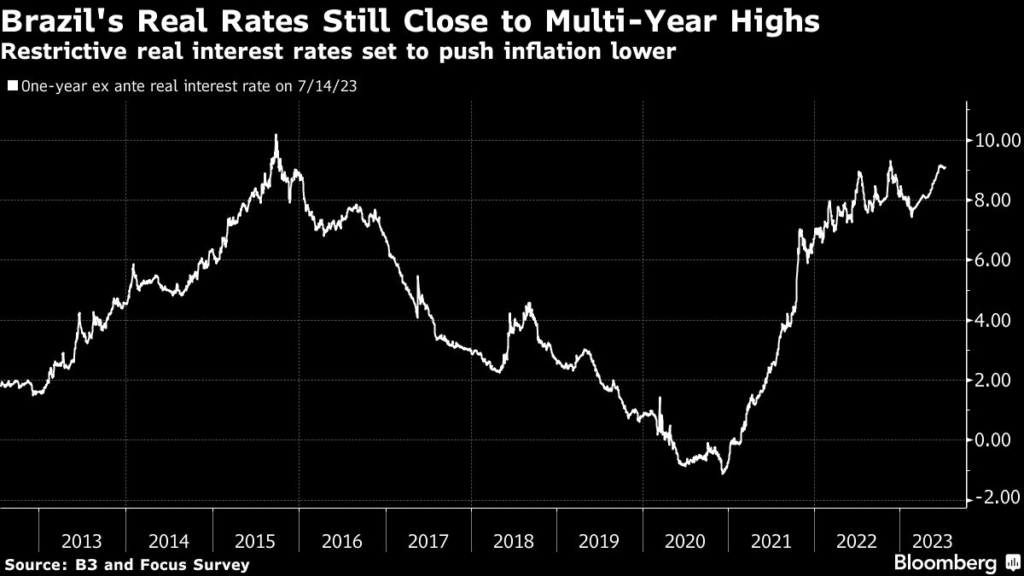 Central bank chief Roberto Campos Neto and his colleagues are expected to lower the so-called Selic rate between 25 and 50 basis points basis points at their meeting next week, according to swaps traders.