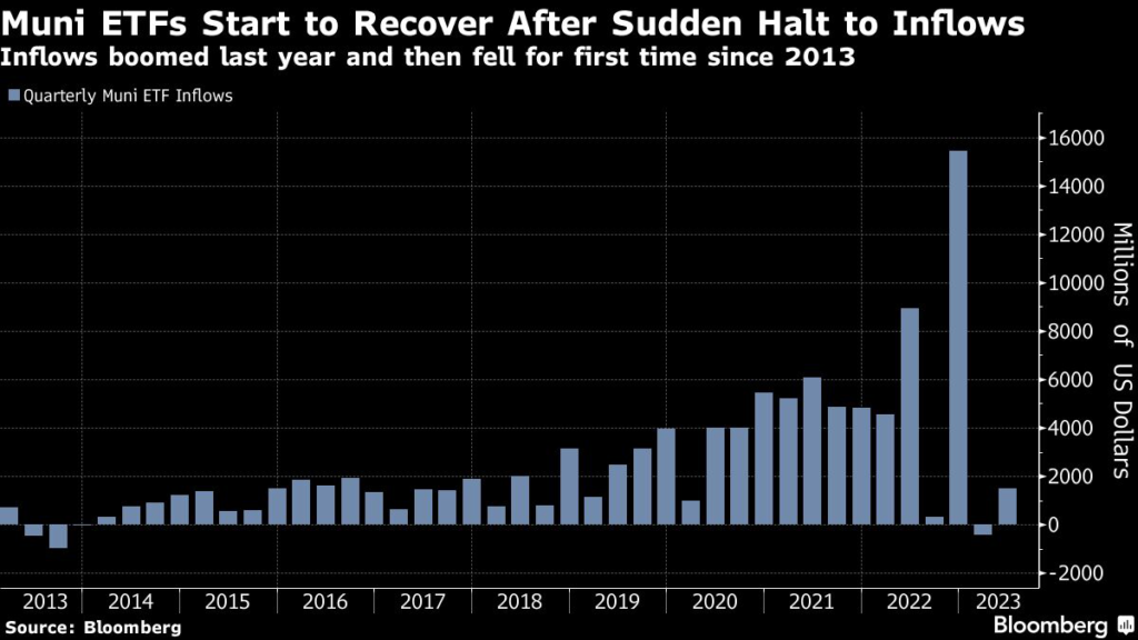 (Bloomberg) — Municipal exchange-traded funds, still a relatively new and small part of the $4 trillion state and local debt market, have seen growth stall dramatically after record inflows last year as the shift away from mutual funds slowed.