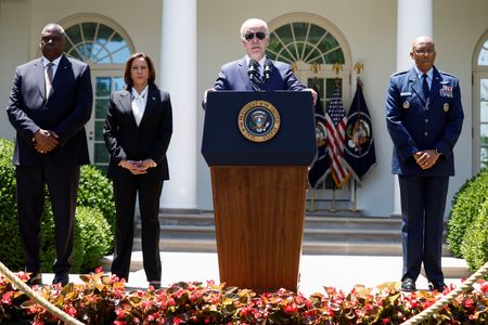 WASHINGTON (Reuters) -President Joe Biden on Thursday accused the Republican party of “undermining the U.S. military” by allowing Republican U.S. Senator Tommy Tuberville to block more than 300 U.S.