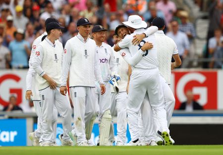 LONDON (Reuters) -Australia led England by 12 runs at the end of a tense and fluctuating second day to leave the final Ashes test at The Oval on a knife-edge on Friday.