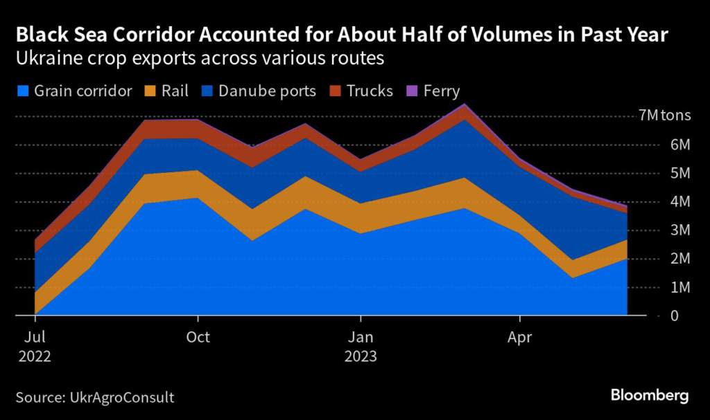 The country has already facilitated the transit of more than 20 million tons of grain from Ukraine, about half of the entire 41 million tons shipped via the so-called solidarity lanes since Russia’s invasion began.