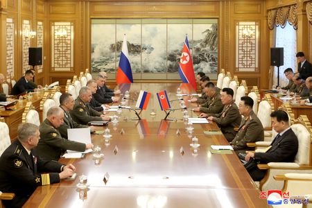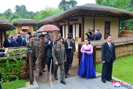SEOUL (Reuters) -Russia’s defence minister accompanied North Korean leader Kim Jong Un to a defence exhibition that featured North Korea’s banned ballistic missiles as the neighbours pledged to boost ties, North Korean state media reported on Thursday.