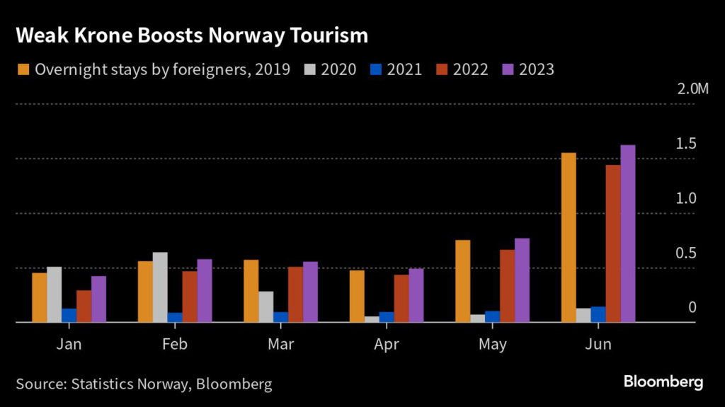 (Bloomberg) — Norwegian tourism is thriving after a weaker krone made the famously expensive Nordic country cheaper to visit and a heat wave in southern Europe increased the allure of a cooler climate.