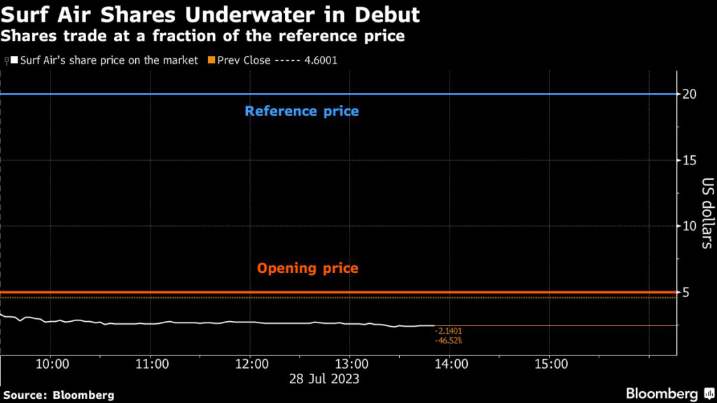 “Surf Air’s early trading highlights that IPO markets aren’t yet completely receptive to somewhat speculative story stocks,” said Rohit Kulkarni, an analyst at Roth MKM.