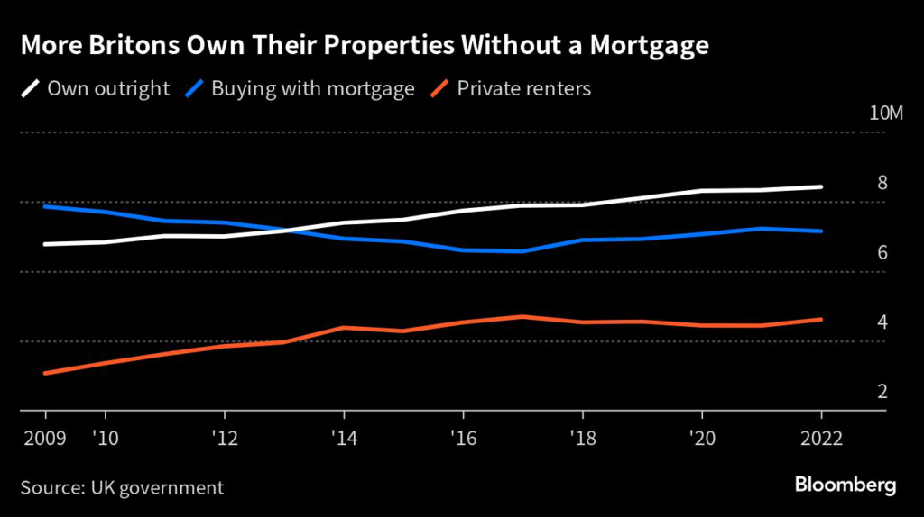 The cycle of rate hikes that began in 2021 is unique because the number of people who own their own home outright has surpassed those who are paying a mortgage linked to their property.