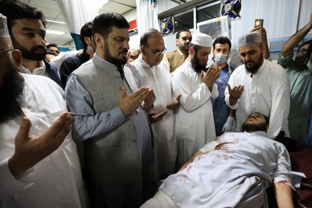 DERA ISMAIL KHAN, Pakistan (Reuters) – At least 42 people were killed and over 130 injured when a suicide bomber set off explosives at a political rally in Pakistan’s northwestern Khyber Pakhtunkhwa province on Sunday, police and rescue officials said.