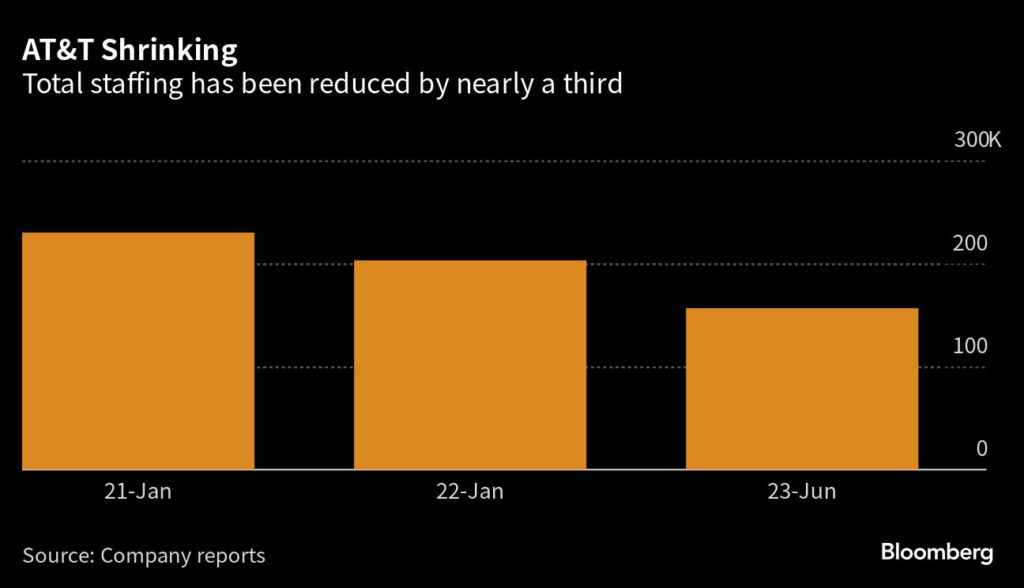 Last week, AT&T said it was increasing its $6 billion cost cutting effort by an additional $2 billion-plus over the next three years. Since the beginning of 2021, AT&T has cut 74,130 employees, or 32% of its total staff through June 30.