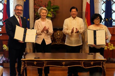 MANILA (Reuters) – The European Union is ready to strengthen cooperation with the Philippines on maritime security, European Commission President Ursula von der Leyen said on Monday, as she stressed the importance of a free and open Indo-Pacific region.