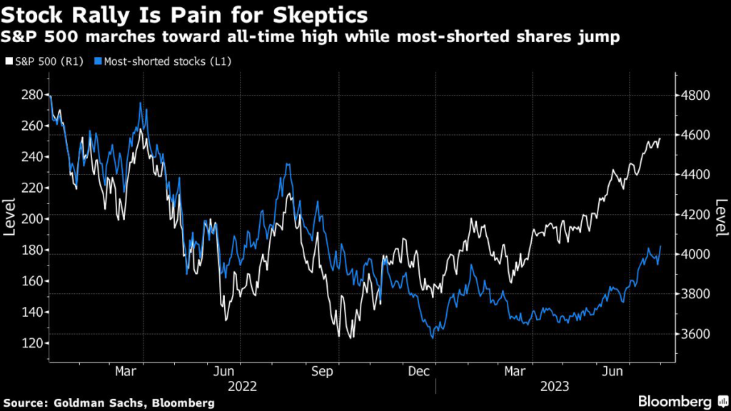 Rather than sinking like most forecasters predicted, stocks have instead surged as the economy stood up to the Federal Reserve’s aggressive inflation-fighting campaign. Along the way, fast-money managers were compelled to cover shorts and chase gains, while strategists scrambled to raise their year-end price targets for the S&P 500.