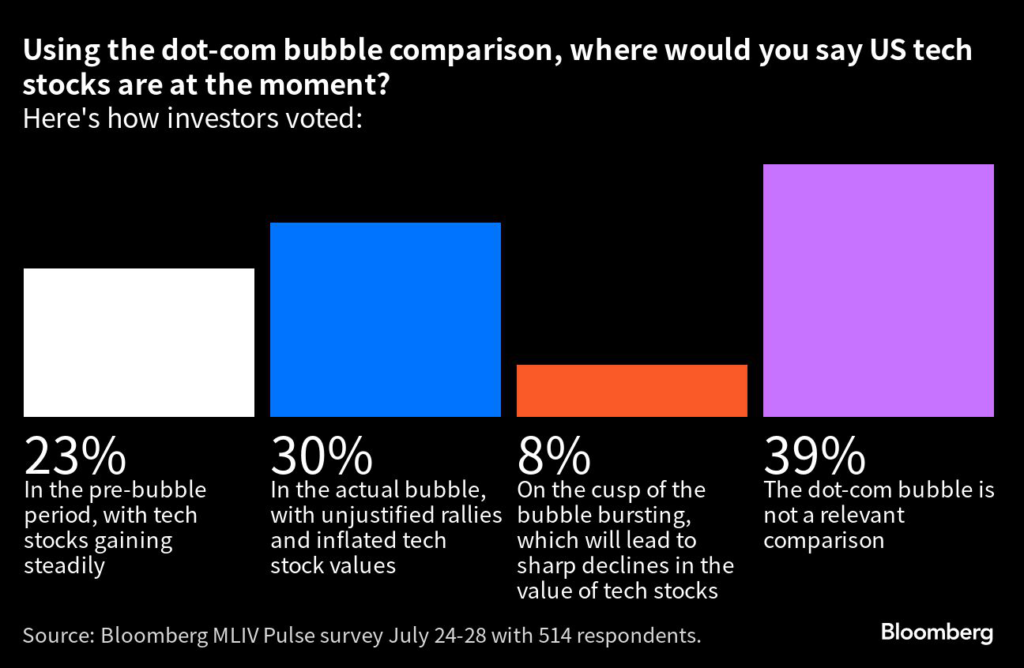 Meanwhile, less than 10% see a bubble in the sector bursting anytime soon. That bullishness has pushed the Nasdaq 100 to its best first half in history, ramping up market valuations and blindsiding pros on the Street.