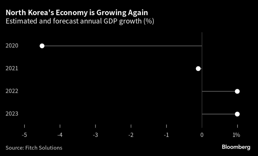Still, signs of a resumption of trade with China, historically North Korea’s biggest trading partner, means Fitch estimate the economy returned to growth after two full years of contraction, though significant uncertainties remain.