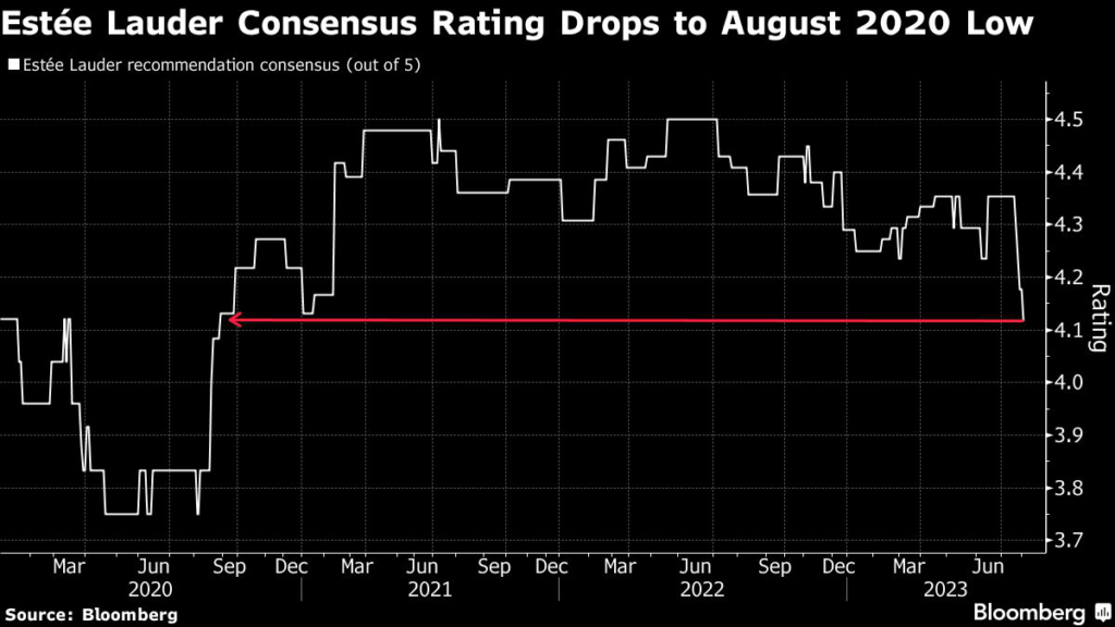 (Bloomberg) — A slew of Wall Street analysts have downgraded Estée Lauder Cos.