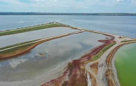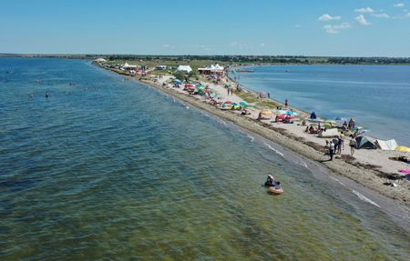 TYLIHUL ESTUARY, Ukraine (Reuters) – Kite surfers bounce along the gentle waves. A speedboat pulls children on an inflatable raft. Families soak up sunshine on a narrow beach.