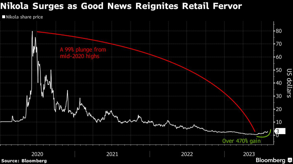 (Bloomberg) — A gravity-defying rally in electric vehicle startup Nikola Corp.