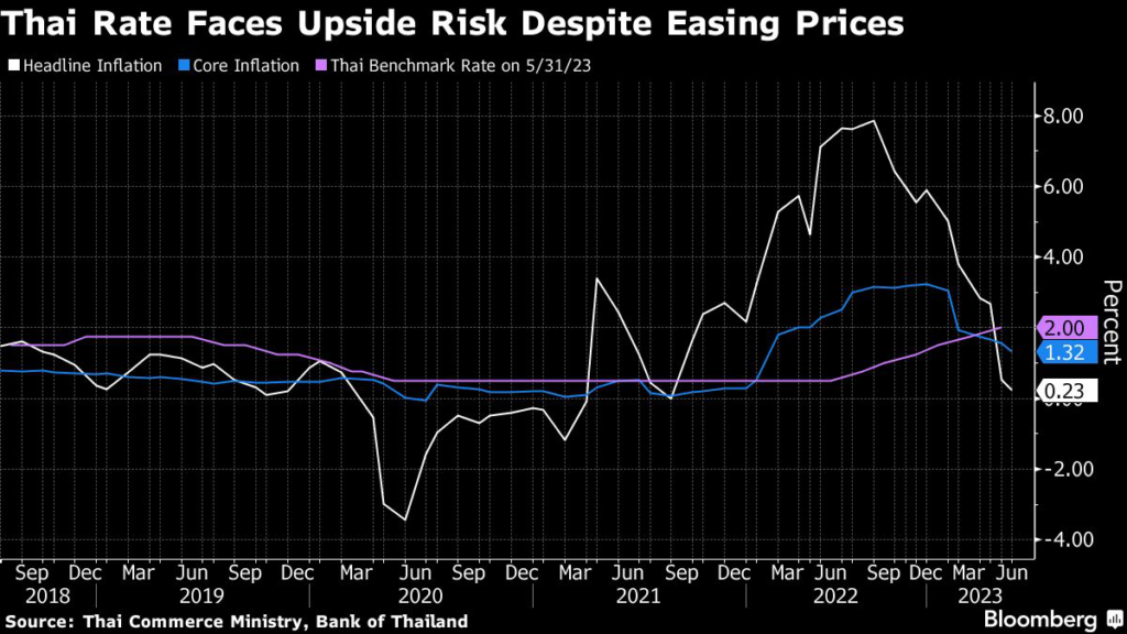 (Bloomberg) — Thailand’s central bank is poised to deliver another rate increase in line with an unwavering post-pandemic tightening strategy despite rapid disinflation and political gridlock.