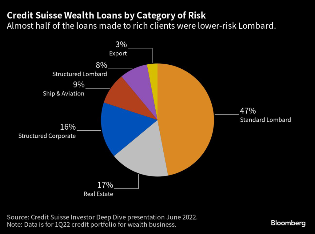 About a quarter of Credit Suisse’s lending portfolio in its global wealth businesses is structured in nature, while about half of the book consists of lower-risk plain-vanilla Lombard loans.
