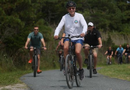 Biden rode his bike, ate at a seafood restaurant, saw a movie and took a moonlit stroll on Rehoboth Beach near his Delaware vacation home, while studiously not commenting on the trials and tribulations of his predecessor.