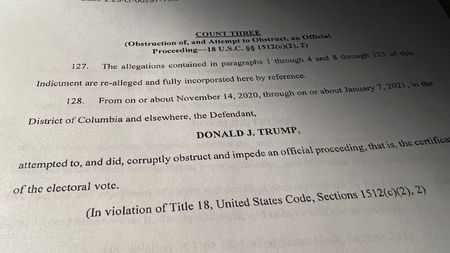 The indictment accused Trump of organizing a push to get fraudulent slates of electors in seven states, all of which he lost, to submit their votes to be counted and certified as official by Congress on Jan.