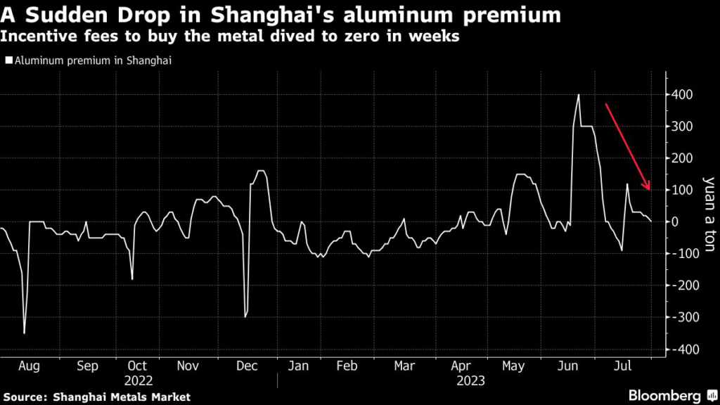 Data from consultancy Shanghai Metals Market show that aluminum premiums — incentives paid by buyers to traders — have already fallen from a peak of 400 yuan per ton to zero in five weeks.