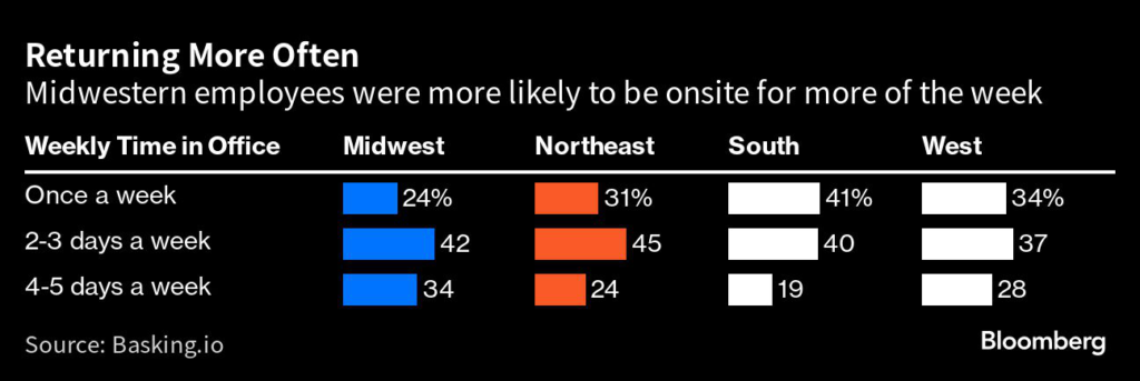 (Bloomberg) — Workers in the US Midwest are coming into offices more often than the rest of the country, new research shows.