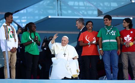 LISBON (Reuters) – One of the biggest crowds ever seen in Portugal mobbed Pope Francis on Thursday as he rode in an open vehicle to a rally where he told an ocean of young Catholics from all over the world to beware the false happiness lurking in social media.