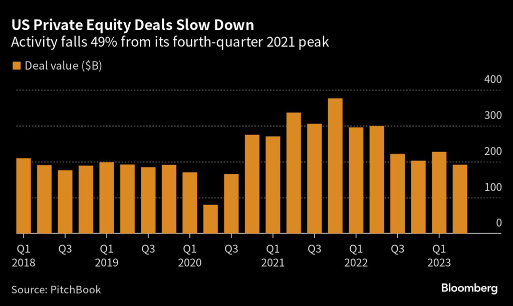 Private equity fundraising in the first half of 2023 tracked 15%-25% below the first half last year, according to PitchBook.