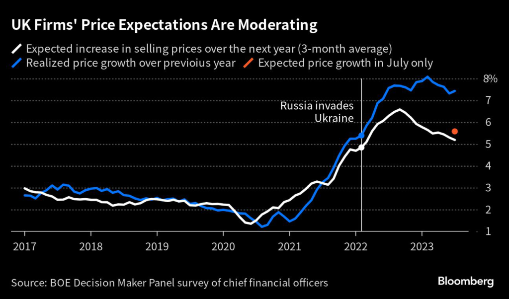 (Bloomberg) — UK firms are finally becoming more sanguine about inflation, a boost for the Bank of England as it tries to bring prices back to target.
