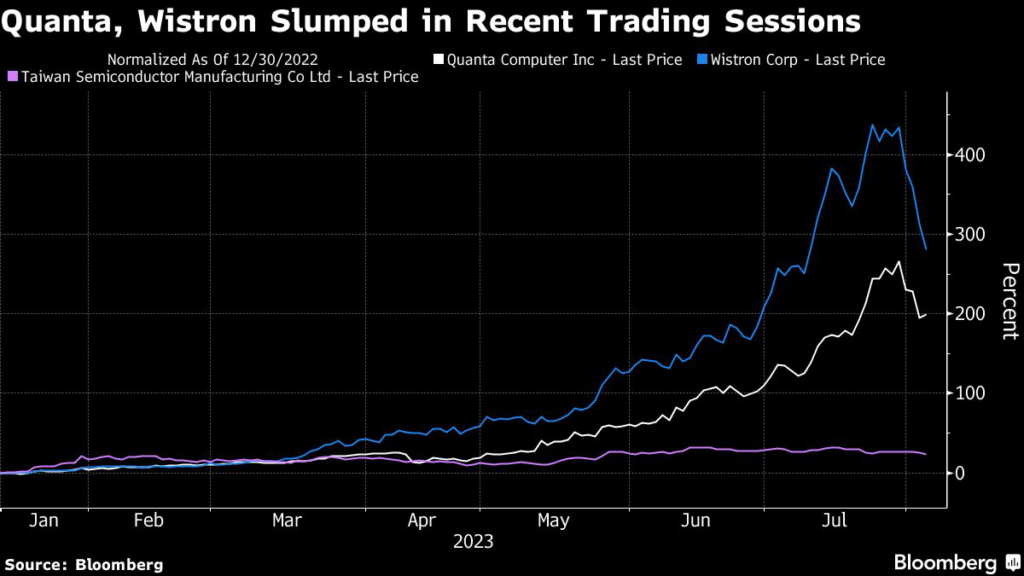 Smaller firms have pulled back even more, with Wistron Corp. and Quanta Computer Inc. set for their worst week on record just days after hitting an all-time high.