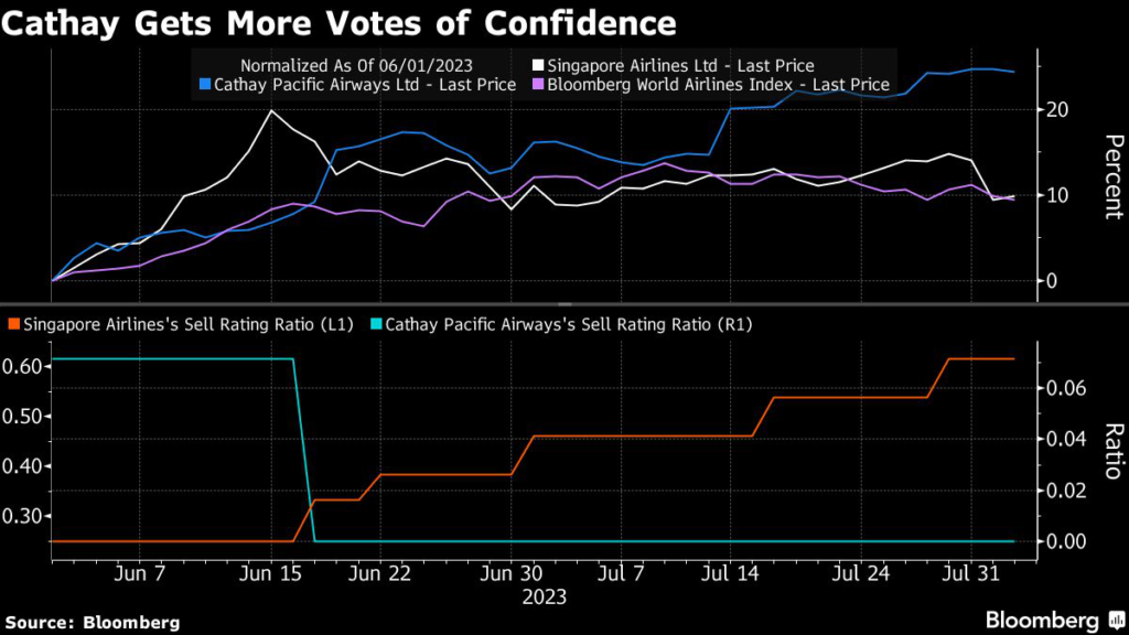 and Singapore Airlines Ltd. may extend further as Hong Kong’s flagship carrier springs back to life after years of pandemic restrictions.