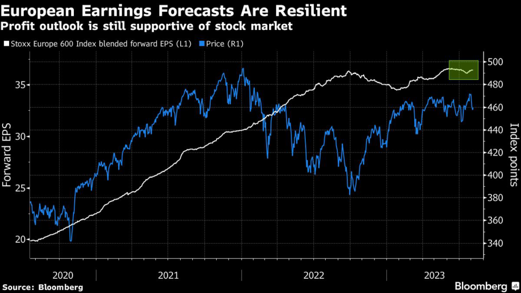strategists led by Beata Manthey wrote in a note on Friday, while raising their earnings outlook for 2023 and 2024 as risks to the economic outlook are more balanced. “Soft-landing scenarios look plausible, but tightening credit conditions remain a key headwind.”