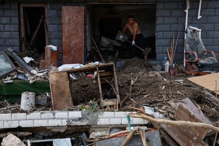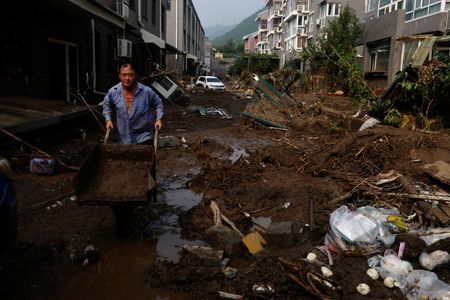 BEIJING (Reuters) -Rain pelted swathes of China’s biggest grain producing province on Friday, submerging farms and worsening floods that have already swamped cities around the country as rescue workers scramble to contain the havoc caused by Typhoon Doksuri.