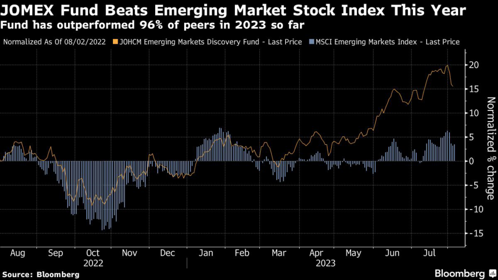 The fund, known as JOMEX, focuses on small and medium capitalization stocks in emerging markets and has returned 19% this year, compared to an average rise of about 9.5% among peers, according to data compiled by Bloomberg.