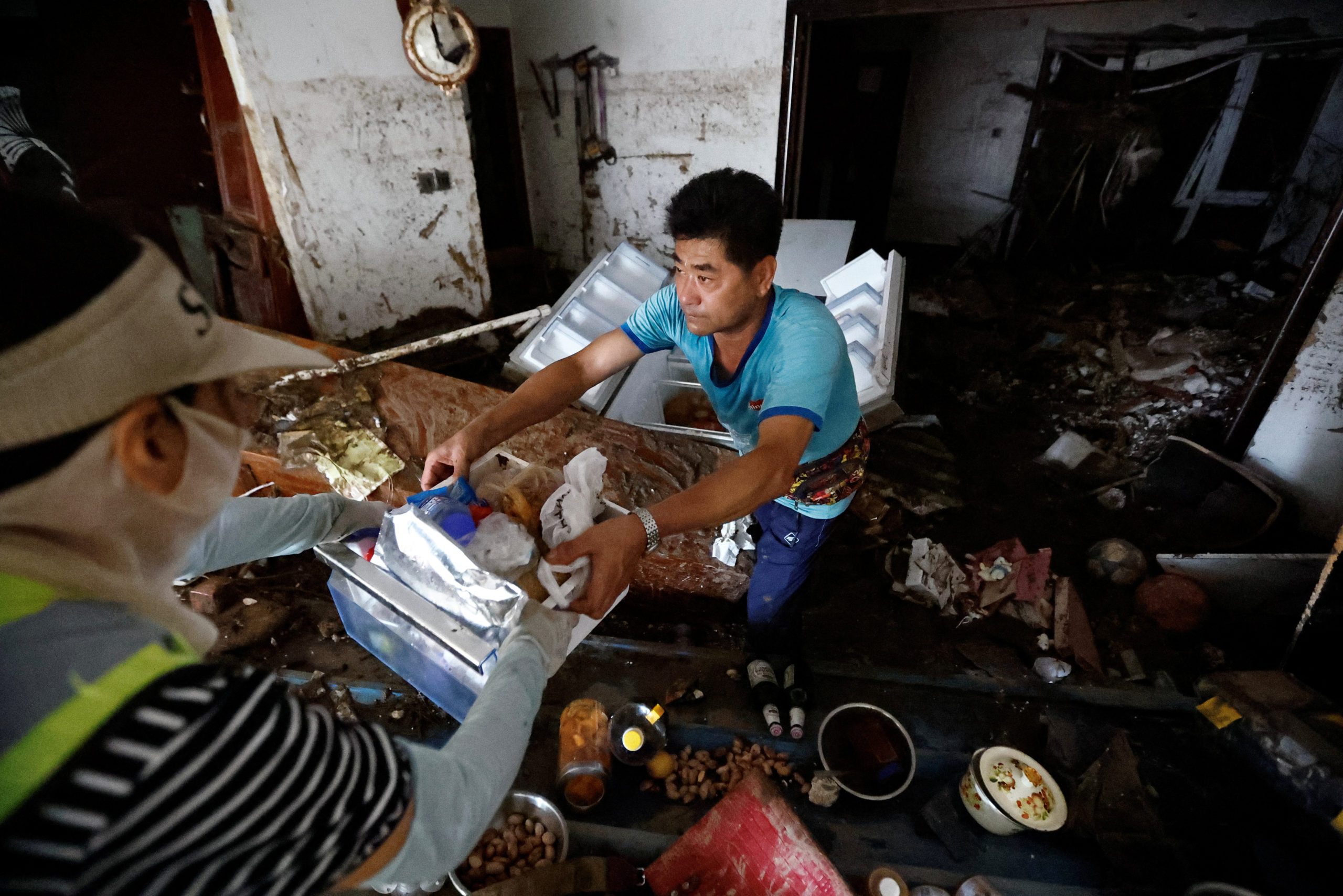 Raging floods, caused by storms that followed Typhoon Doksuri, destroyed his ground-floor apartment and washed his Merc away.
