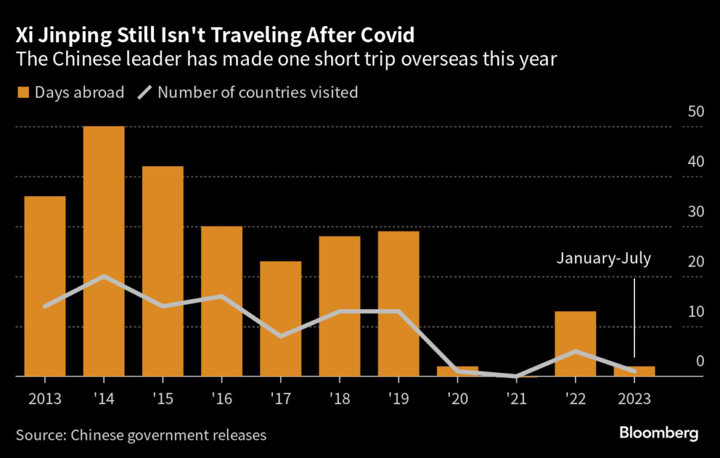 That’s a major shift from his pre-Covid schedule, when Xi traveled more often and for longer than his US counterpart.