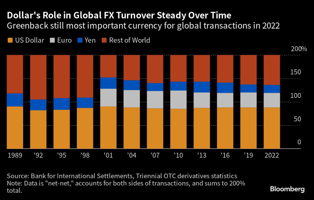 And with growing geopolitical tensions, the likes of ex-Credit Suisse AG strategist Zoltan Pozsar argue that the hegemony of the greenback is likely on borrowed time.