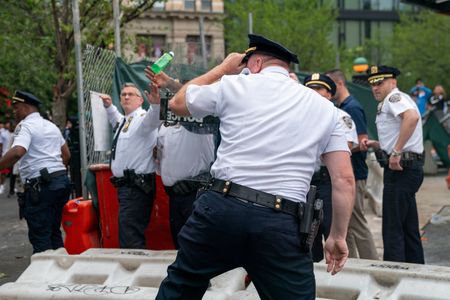NEW YORK (Reuters) -Thousands of people overran New York City’s Union Square and the surrounding streets on Friday in a chaotic scene after a popular live streamer announced a “giveaway” event, with police struggling to contain fans throwing projectiles and injuring officers.