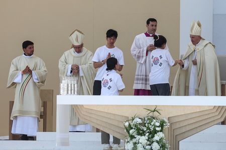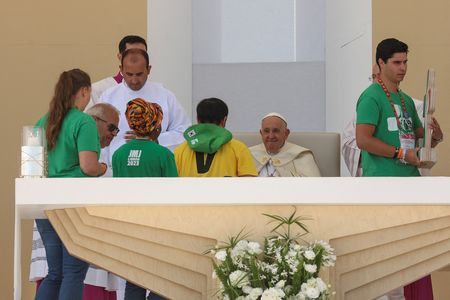 LISBON (Reuters) -Pope Francis closed an international festival of Catholic youth on Sunday with a huge outdoor Mass and his own “I have a dream” speech, saying he longed for world peace, especially for Ukraine.
