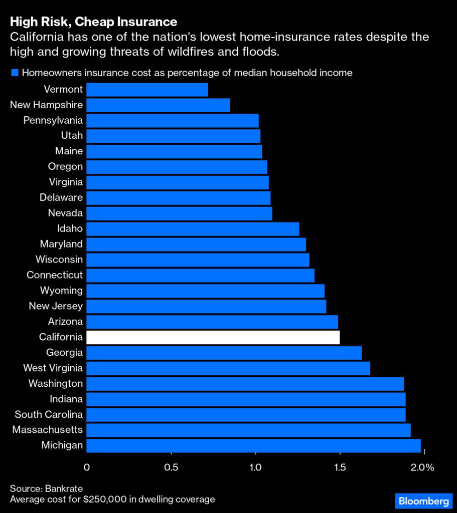 (Bloomberg) — With California’s population in decline, rising home insurance premiums threaten to intensify the exodus and further weaken state and local finances, S&P Global Ratings Inc.