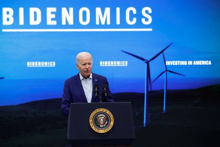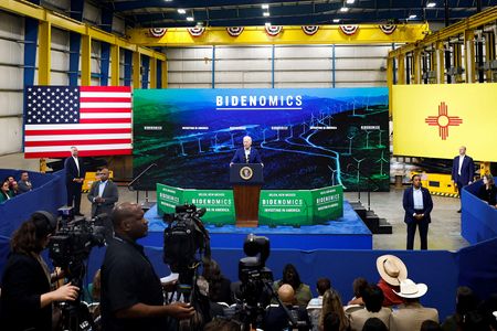 BELEN, New Mexico (Reuters) -U.S. President Joe Biden took his economic pitch to New Mexico on Wednesday to boast how his signature legislation helped turn a previously shuttered facility into a wind tower manufacturing facility.