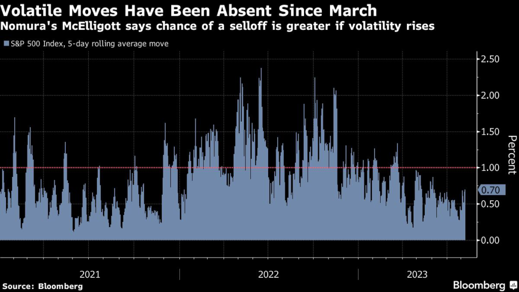 (Bloomberg) — It could take just a 1% move in the S&P 500 — up or down — every day for a week for the rally in US stocks to come under significant pressure.