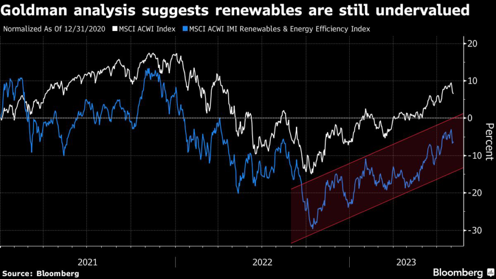 Analysts at Goldman Sachs Group Inc. say that a number of key green sectors remain meaningfully underpriced.