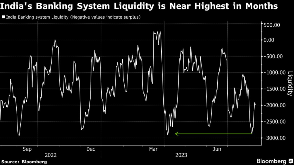 Surplus liquidity with banks has surged driven by the return of the highest denomination 2,000 rupees notes back into the banking system as well as the RBI’s forex operations.
