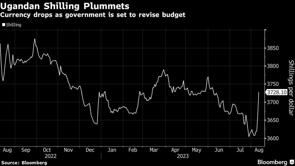 (Bloomberg) — Uganda’s shilling headed for the biggest drop in almost eight years as officials said they would need to revise the budget after the World Bank halted new funding to the country for its passage of anti-LGBTQ legislation.